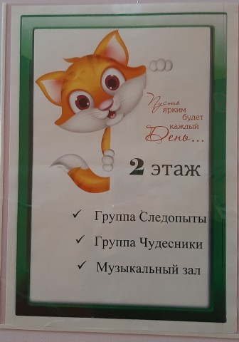 - Кабинетные таблички, нумерация и названия групповых помещений существенно облегчают навигацию по зданию.